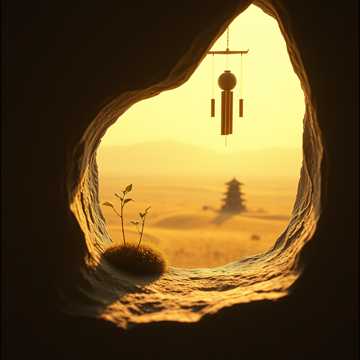 (Instrumental: solo guqin or acoustic guitar with open tuning, wind chimes, distant wind)