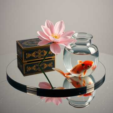 褪色锦鲤 在瓷缸游泳