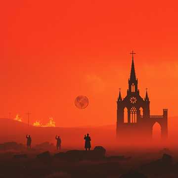 Distant sky, stained crimson red