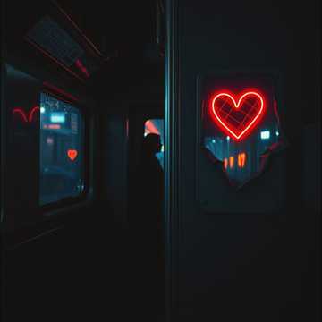 [soft piano single notes in minor key, distant subway rumble, rain against window, 8 seconds slow fade in]