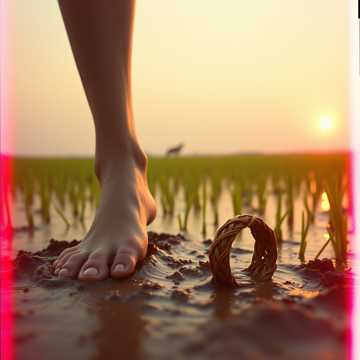 赤脚踩过 新翻的泥巴软